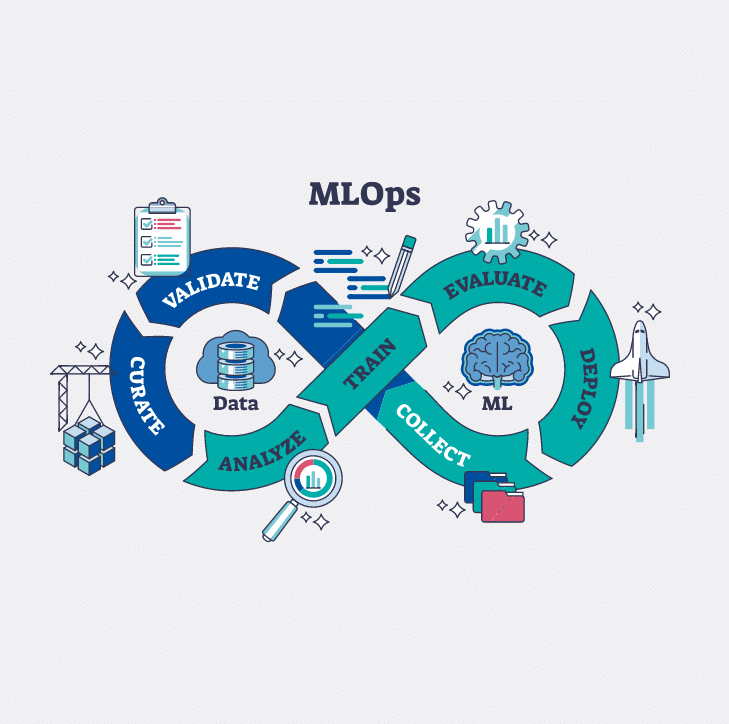 In unserem Leistungsangebot legen wir besonderen Wert auf MLOps, das effiziente Management von Machine Learning-Projekten in der Produktion. MLOps ist die Kombination von DevOps-Praktiken und maschinellem Lernen, um den gesamten Lebenszyklus eines Machine Learning-Modells von der Entwicklung über das Training bis hin zum Deployment und der Überwachung zu optimieren. Unsere Expert*innen unterstützen Sie dabei, Ihre Machine Learning-Initiativen nahtlos in Ihre bestehenden Prozesse und Infrastrukturen zu integrieren.
