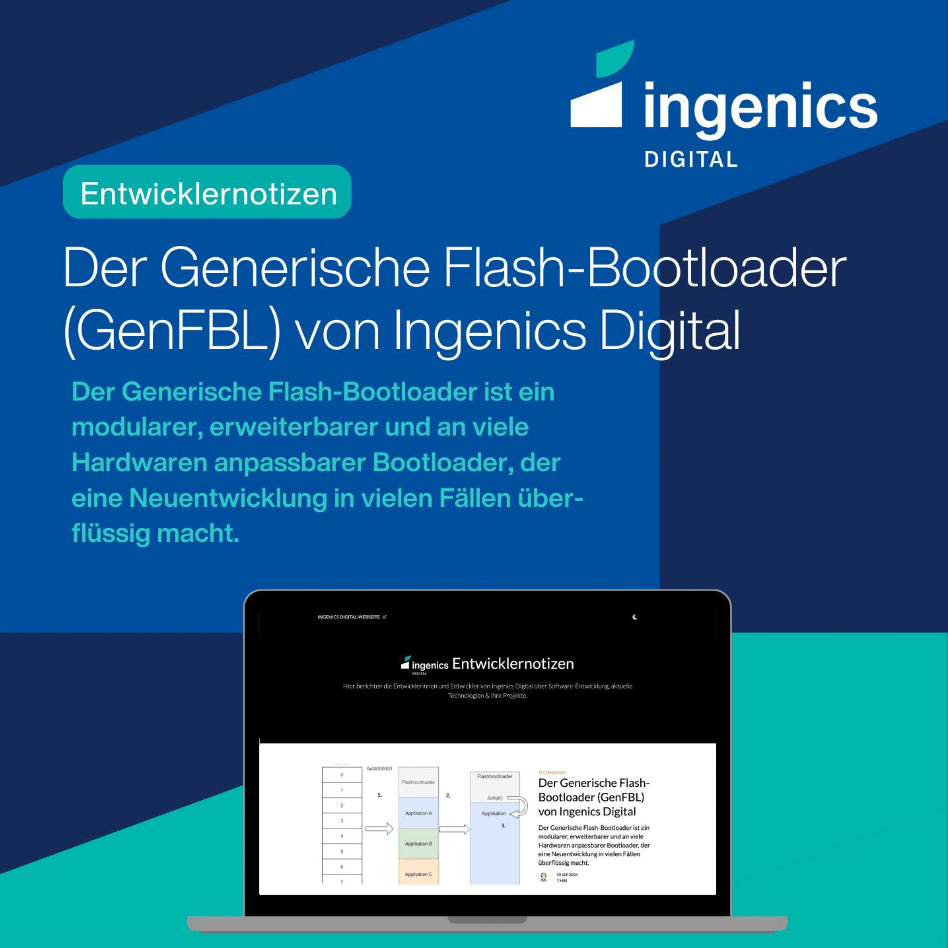 Mit dem GenFBL haben wir bei Ingenics Digital einen universellen Flash-Bootloader entwickelt, der Firmware-Updates auf Mikrocontrollern einfacher und kosteneffizienter macht.