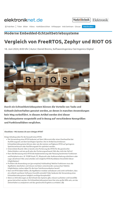 Vergleich von FreeRTOS, Zephyr und RIOT OS